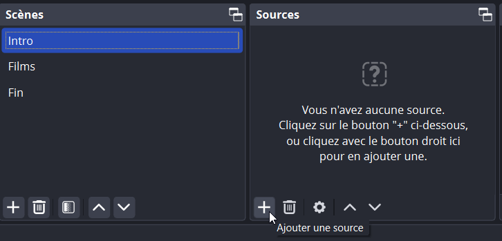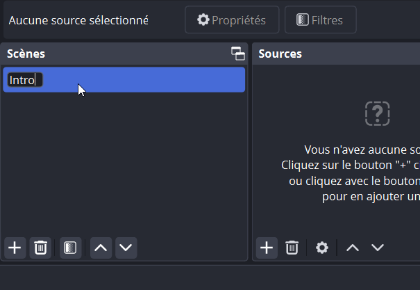 Une fois OBS lancé, renommez la scène 1 en Intro