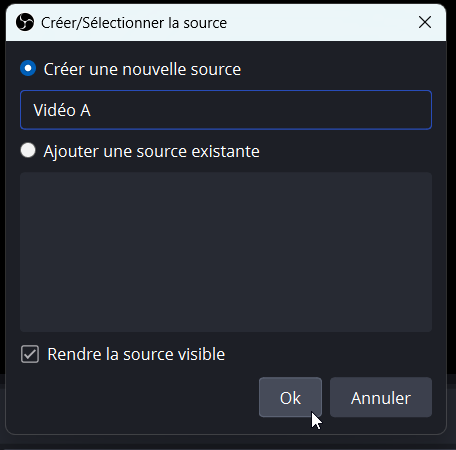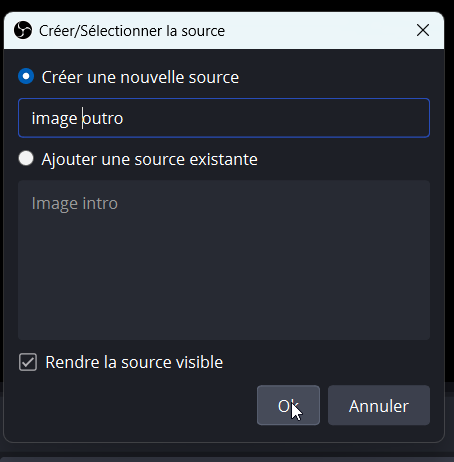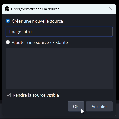Ajouter une source Image nommez-la et cliquez sur le bouton Ok