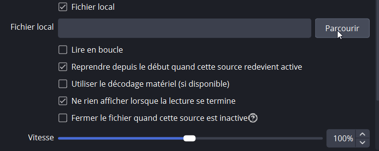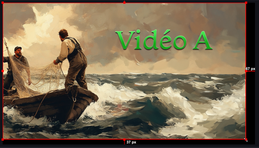 La vidéo apparait dans l’interface d’OBS, à l’aide des poignées, étirez la vidéo pour l’adapter à la taille de l’écran.