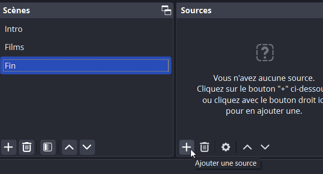 Ajoutez une nouvelle scène via le panneau Scènes (bouton +)
