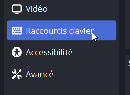 Cliquez sur Raccourcis clavier (panneau de gauche).
