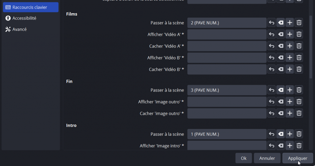 En cas d’erreur de raccourci vous pouvez l’effacer via ce bouton puis retapez le raccourci.